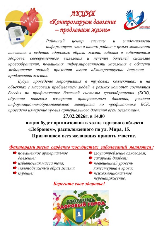Акция по профилактике болезней системы кровообращения Контролируем давление — продлеваем жизньНовости 25.02.2026