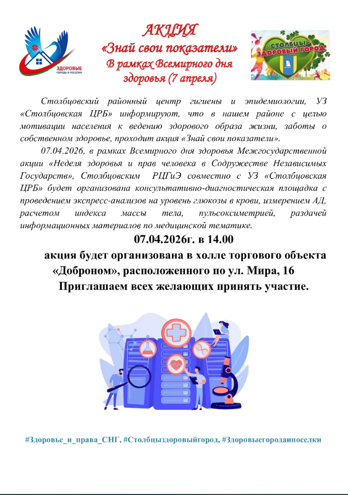 Акция «Знай свои показатели». В рамках Всемирного дня здоровья (7 апреля)Новости, Столбцы - здоровый город 02.04.2026