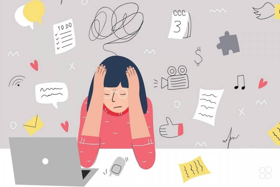 Человеку приходится делать не то, что хочется; регулярно не хватает времени; человека что-то или кто-то все время подгоняет; человеку постоянно хочется спать, он не может выспаться; человек видит чересчур много снов, особенно если устал за день; человек много курит; человек потребляет алкоголя больше, чем обычно; человеку почти ничего не нравится; дома, в семье постоянные конфликты; постоянно ощущается неудовлетворенность жизнью; человек влезает в долги, даже не зная, как будет расплачиваться; у человека появляется комплекс неполноценности; человеку не с кем поговорить о своих проблемах, и не возникает желание; человек не чувствует уважения к себе — ни дома, ни на работе.